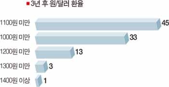 현 수준인 1100원대로 본 경우는 13명, 1200원대 이상으로 본 경우는 4명에 머물렀다.