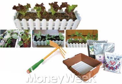 최근에는 초보자들이 쉽게 베란다 농사에 도전할 수 있도록 구성한 원예용품들이 적지 않게 출시돼 있다. 울타리화분, 원예용 상토, 씨앗이 한 세트로 구성된 ‘베란다 텃밭세트’가 대표적. 여러가지 채소를 한꺼번에 재배할 수 있는 수경재배기도 인기다.