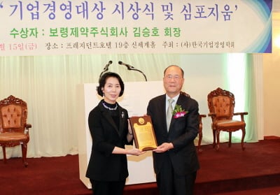 보령제약(9,650원 ▼80 -0.82%)그룹은 김승호 회장이 지난 15일 한국기업경영학회에서 수여하는 ‘기업경영대상’을 수상했다고 17일 밝혔다.