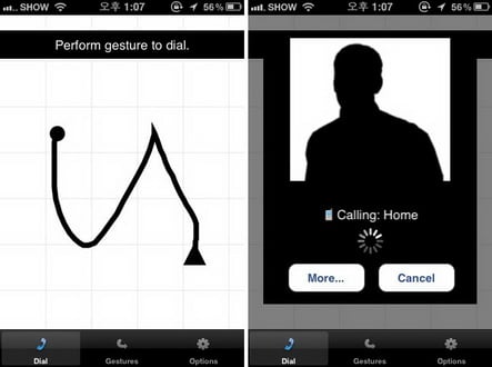 '아이폰'은 단축다이얼을 기본적으로 제공하지 않기 때문에 불편하다. 그러나 '제스처 다이얼' 애플리케이션을 사용하면 이 불편을 어느 정도 해소할 수 있다. 이 앱은 단축다이얼보다 더 간단하게 원하는 사람에게 전화를 걸 수 있다.