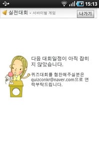 실전대회는 점수를 얻는 퀴즈게임과는 조금 다르다. 이 대회에서 우승을 하게 되면 모바일쿠폰들의 상품을 얻을 수 있다. 그러나 아직 실전대회는 서비스되지 않고 있다. 실전대회가 서비스되면 게임의 재미는 더 커질 것같다.