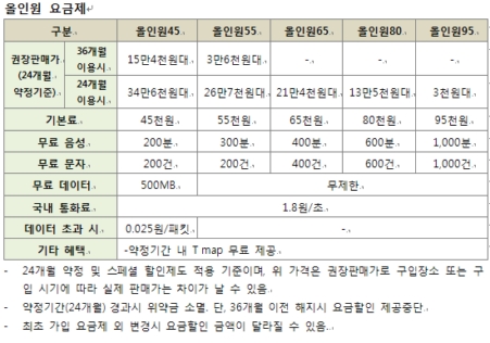 월 5만5000원짜리 '올인원 55' 3년이용조건 요금제 선택시 가능