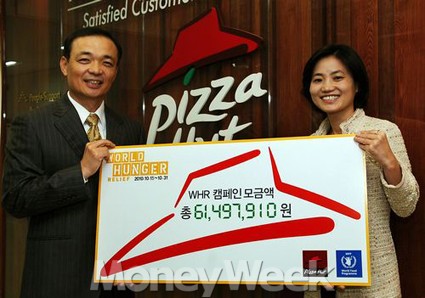 피자헛은 유엔산하 세계식량계획(WFP)과 함께 진행하는 글로벌 기아돕기 캠페인 '2010 세계기아해방 캠페인'을 통해 총 5만3000여명의 소비자 기부참여를 이끌어냈다. 'Love beSIDE You'란 슬로건을 걸고 캠페인을 펼쳐 전국 매장에서 기아돕기 특별 메뉴인 'WHR' 샘플러를 약 5만2000개나 판매해(1개당 1000원 적립) 기아돕기 기금 5200여만원을 적립할 수 있게 됐다.