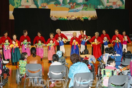 7년 전부터 인형극으로 어려운 이웃에게 웃음을 선사해온 어르신이 있다. 68세인 금혜령씨(사진 오른쪽 세번째)가 그 주인공. 금씨가 소속된 '좋은이웃 실버인형극단'은 굿네이버스 소속이다. 이 인형극단은 65∼87세 노년층이 활동하는 인형극단으로, 춘천세계인형극제에서 인기상을 수상하는 등 발군의 실력을 과시하고 있다. 아이들에게는 교육적인 내용을, 어른들에게는 감동이 있는 가족연극을 선보여 호응도가 높다.