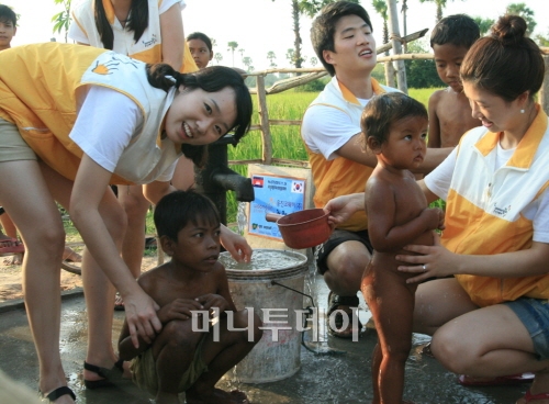 웅진코웨이 우수봉사활동 직원과 대학생 캠퍼스리포터로 구성된 봉사단은 우물파기는 물론 제기차기, 팽이치기, 탈놀이 등 한국 전통놀이도 현지 아이들에게 가르쳐줬다. 간이식 화장실도 설치해주고 고아원을 방문해 어린이 용품도 전달했다.