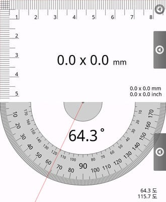 각도기는 3가지 종류가 있다. 화면을 터치하는 방식, 경사를 측정하는 센서를 이용한 방식, 센서를 이용한 측정을 화면으로 볼 수 있다. 상황에 따라서 3개의 각도기 중 측정하기 좋은 것을 선택하면 된다.