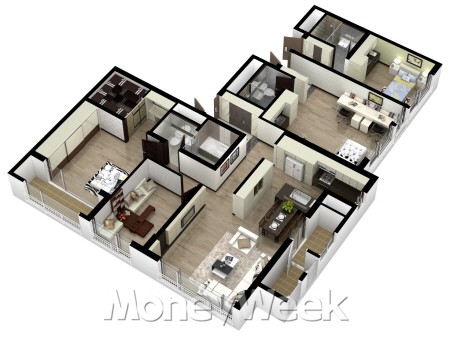 수익형 평면이 보편화되면서 보다 강력한 평면도 등장했다.GS건설(28,200원 ▼3,650 -11.46%)은 지난 9월 아파트 한채에 세가구가 사는 더블 임대수익형 평면을 내놨다. 두가구의 세입자를 들이면 두배의 임대수익을 올릴 수 있다.
