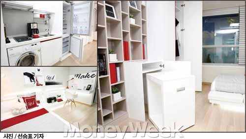 하지만 실거주자의 입장에서 보자면 면적이 마음에 걸린다. 아무리 1~2인 가구라 하더라도 20㎡는 그리 넉넉한 공간이 아니다. 세간 몇개 가져다 놓으면 침대 하나 놓을 자리도 부족한 곳이 대부분이다. "몸 만 오세요. 다른 것은 다 준비돼 있습니다"라며 빌트인 방식을 내세우고 있는 이유인지도 모른다.