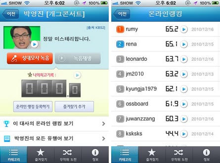 높은 점수를 받으려면 연습이 필요하다. 녹음돼 있는 유행어는 계속해서 반복 청취할 수 있어, 연습하는데 도움이 된다. 또 녹음 기능도 있어서 자신의 목소리를 직접 녹음하고 재생할 수 있다.