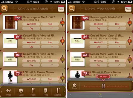 ‘코난 와인서치’는 이러한 와인 고르기에 어려움을 소프트매칭 기술을 이용해 해결해주는 앱이다. 와인 이름을 잘 알지 못해 정보검색에 애를 먹거나 음식, 당도, 생산지 등 취향에 맞는 와인을 고르는데 어려움을 겪는 와인 입문자에게 특히 유용하다.