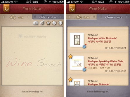 이 앱의 가장 큰 특징은 와인에 대한 감상평을 남기는 와인 노트와 소셜네트워크서비스(SNS) 연동 기능이다. 와인에 대한 감상을 와인 노트에 적은 다음, 트위터와 페이스북을 이용해 친구들과 공유할 수 있다.