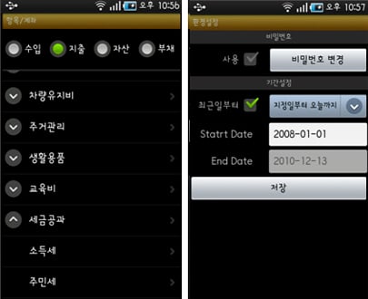 '금전관리’는 쉽게 말하면 가계부이다. 언제나 휴대하는 스마트폰에서 쓰는 손 안의 가계부임 셈이다. 이번에 안드로이드용으로 출시된 ‘금전관리’는 일전에 윈도폰으로 나온 ‘애니 파이낸스’와 같은 앱이다. 윈도폰에서 꽤 인기를 끌던 ‘애니 파이낸스’가 안드로이드 버전으로 출시된 것이다.
