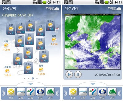 이에스엠소프트가 '아이폰'의 인기날씨 애플리케이션 '웨더스타(WeatherStar)'의 안드로이드 버전을 내놨다. '웨더스타'는 기상청 데이터를 제공받아 개발을 진행했기 때문에 기상청 홈페이지에서 보는 정보와 동일한 정보를 제공한다.