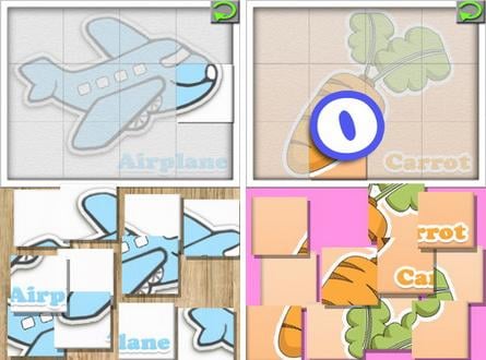퍼즐을 풀 사물을 선택하면 맨 처음 선택했던 연령에 맞게 퍼즐이 조각으로 나누어진다. 아이들은 나누어진 퍼즐 조각을 원래대로 맞추면 되는 것이다. 자동 저장기능이 포함되어 있어서 마지막으로 풀던 퍼즐을 나중에 다시 풀어 볼 수 있다.