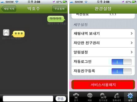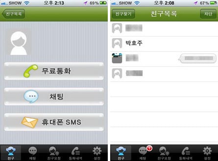 전화기능 말고 1:1 채팅 기능도 제공한다. 채팅으로 친구에게 메시지를 보내면 실시간으로 메시지가 전송이 된다. 문자메시지 대신 사용해도 문제없다.