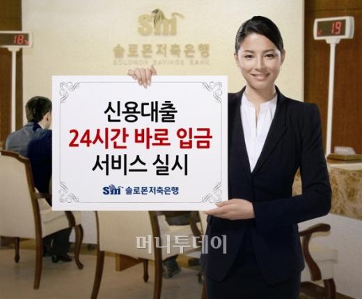저축은행 업계 1위솔로몬저축은행은 밤낮없이 급한 돈이 필요한 서민들을 위해 국내 제도권 금융기관 최초로 365일 연중무휴 24시간 신용대출 상담 및 입금 서비스를 시작한다고 17일 밝혔다.