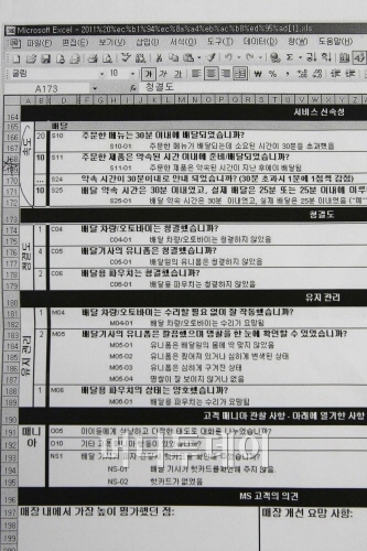 이 평가서에서 슈퍼바이저와 매장 직원들을 가장 크게 압박하고 있는 조항은 ‘배달시간 30분’ 항목. 본지가 단독 입수한 <미스터리 쇼퍼 평가 항목> 중 ‘서비스 신속성’의 첫번째 문항이 '주문한 메뉴는 30분 이내에 배달되었습니까?'다.
