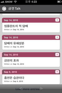 이밖에 금연Talk에서는 금연에 관한 정보들을 보여준다. 금연효과나 담배의 유해성분 등 흡연의 나쁜 점과 금연의 좋은 점 정보를 볼 수 있다. 이 정보를 보면 더욱더 금연을 해야겠다는 결심이 서게 된다.