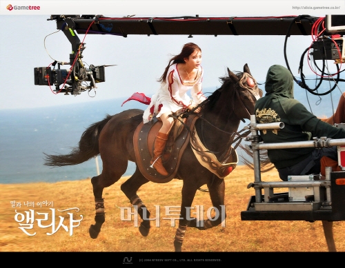 아이유는 최근 제주도 한 목장에서 CF촬영을 진행했다. 생전 말을 타본 경험이 없는 아이유는 온라인 게임 '앨리샤'를 위해 진짜로 말을 탔다.
