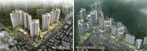 당리 푸르지오의 입주는 2013년 3월, 견본주택은 18일 개관한다. 다대 푸르지오의 입주는 2012년 9월, 견본주택 개관은 상반기 중으로 예정돼 있다.