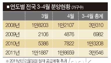 봄맞이 분양열풍은 올 한해 건설업계의 분양성적을 판가름할 분기점이다. 만약 이번 시점에서도 청약 성적이 저조하다면 당분간 침체의 골이 깊어지겠지만 재현 기미가 보인다면 낙관론이 힘을 얻을 수 있다.