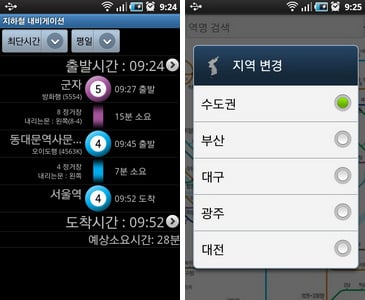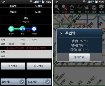 안드로이드 전용으로 마켓에서 무료로 내려 받을 수 있다. 가장 많은 사용자를 가지고 있는 앱으로 지하철 정보만 담고 있는 심플한 앱이다. 사용법도 간단하다.