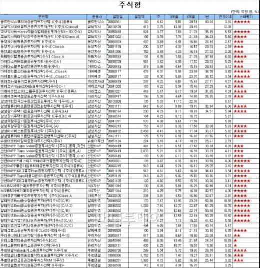 우량 중소형주에 투자하는 중소형주펀드와 20~30개 소수 종목에 집중 투자하는 압축형펀드의 선전이 두드러졌다.