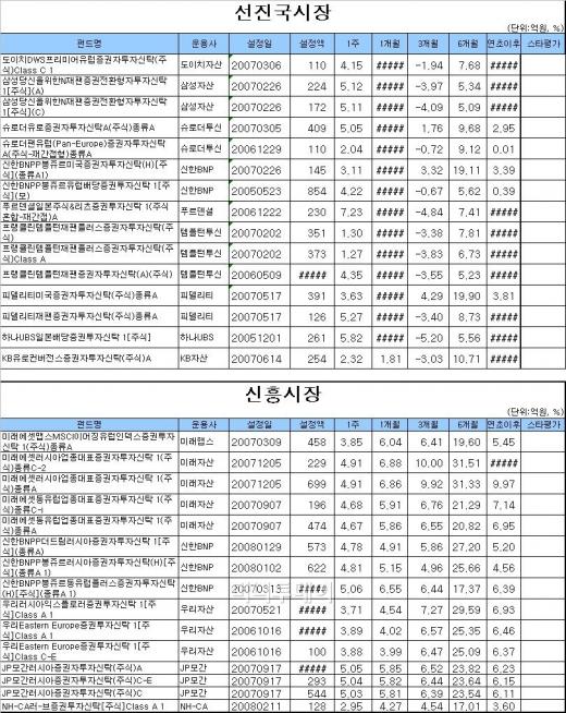 이머징펀드 중에선 러시아펀드와 동유럽펀드가 브릭스펀드와 중국펀드(홍콩H지수) 에 비해 상대적으로 나은 모습을 보였다. '신한BNPP봉쥬르동유럽플러스증권자투자신탁(H)[주식](종류A 1)'가 이머징펀드 중 최고인 5.06%의 수익률을 기록했으며 'JP모간러시아증권자투자신탁(주식)A'가 5.05%로 뒤따랐다.