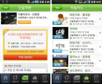 할인 상점 검색 이외에도 단골서비스도 하고 있다. 단골 서비스는 지난 2월 강남지역 상점 중심으로 시작한 서비스로 사용자가 단골로 등록을 하면 해당 상점의 할인 쿠폰을 받을 수 있고 적립카드를 폰에서 관리 할 수 있게 하는 서비스이다.