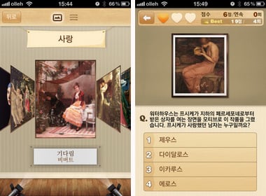 가로·세로 모드를 모두 지원하고 아이폰4의 레티나 디스플레이까지 지원한다. 그리고 글씨 크기와 서체 변경이 가능하고, 다양한 키워드 분류를 통해 좀더 쉽게 명화를 감상할 수 있다. 슬라이드 쇼 기능으로 디지털 명화 액자로도 활용할 수 있다. 심심할 때 명화에 관한 퀴즈를 풀다보면, 미술 상식도 넓힐 수 있게 될 것이다.