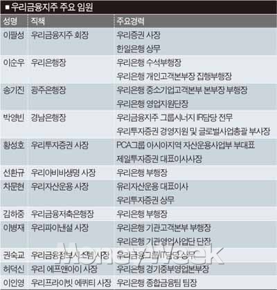 우리금융과 그룹 내 맏형 격인 우리은행을 진두지휘할 '이팔성-이순우'체제가 갖춰져 민영화 작업에 가속도가 붙을 것이라는 기대가 나온다.