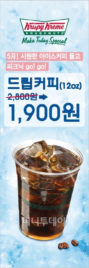 도넛 브랜드 크리스피 크림 도넛(www.krispykreme.com)이 5월 한 달 동안 유기농 드립커피를 1,900원에 판매한다.