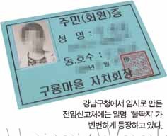 이곳 전입신고서는 일반 전입신고서와는 달리 동과 호수를 적는 란이 인쇄돼 있지 않고 수기로 적혀 있었다. 기자가 동·호수를 묻자 할머니는 주민(회원)증이라고 적힌 코팅이 된 파란색 종이를 꺼내들었다. 직인과 함께 구룡마을 자치회장이 발급한 것이었다. 발행일은 2003년 5월이었다.