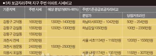 과천은 강남권 보금자리 커트라인(1200만~1500만원)보다 낮은 900만원 이상이, 고덕지구와 강일지구는 하남 강일보다 높은 1100만원 이상이 각각 안정권으로 예상됐다.