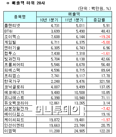 [표]코스닥, 1Q 연결 매출액 순위