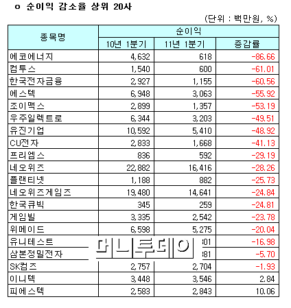 [표]코스닥, 1Q 연결 순이익 증가율