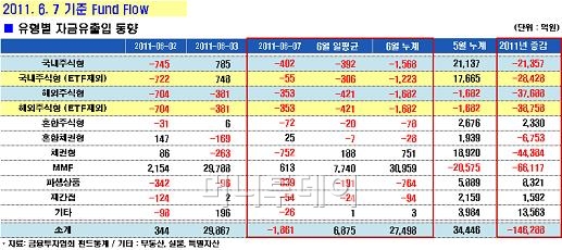 MMF(머니마켓펀드)에는 이날도 613억원이 순유입됐지만 채권형펀드에서는 752억원이 이탈했다.