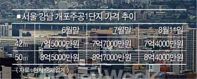 최근 고개를 들던 강남 재건축 아파트 가격도 이내 숨을 죽였다. 서울 강남구 개포동 개포주공1단지는 최근 2∼3일 동안 평균 2000만∼3000만원씩 떨어졌다.