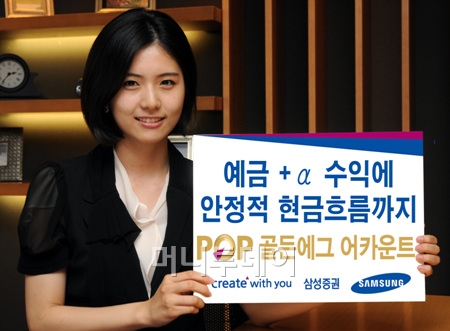 '삼성POP골든에그어카운트'는 글로벌 인플레이션으로 기존 확정형 금융상품이 제시하기 어려웠던 자산가치의 보존과 현금흐름 창출을 목표로 하는 서비스로 기존 펀드·주식 계좌와는 별도로 운용된다.