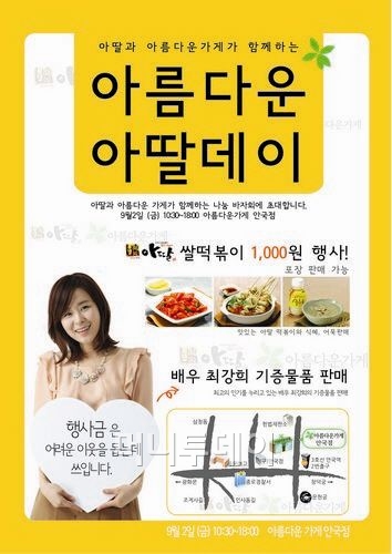 특히 요즘 <보스를 지켜라>를 통해 최고 주가를 올리고 있는 전속모델 최강희 씨도 ‘아름다운 아딸데이’에 직접 참석해, 본인의 애장품 경매를 진행할 예정이다.