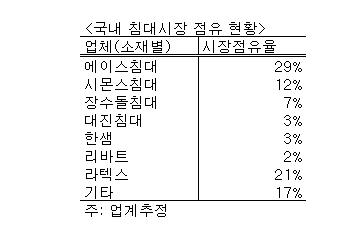 하지만 한샘이 신공법의 매트리스 제조설비를 도입, 자체 생산 체제를 갖추면서 침대 시장에 어떠한 판도변화를 가져올지 업계의 관심이 집중되고 있다.