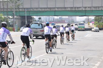 김대식 과장(이하 김) : '바이크 노마드'는 자전거를 타고 다니면서 자유를 느끼자는 취지로 뭉친 친목 모임이다. 올해 5월 시작된 이 모임은 30명 정도가 모여서 함께 자전거를 타며 친목 활동을 한다. 정기적으로는 매월 셋째 주 토요일에 모이고 비정기적으로도 몇몇이 모여서 주말이나 평일 오후에 자전거를 타고 남산을 등반하기도 한다.