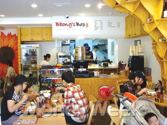 22평 규모의 프리미엄푸드카페 '뽕스밥' 길동점은 한달 전부터 면요리와 볶음밥, 샐러드, 원두커피를 하나로 묶은 메뉴를 출시해 직장인 위주의 고객을 가족 단위 외식 고객으로 넓혔다.