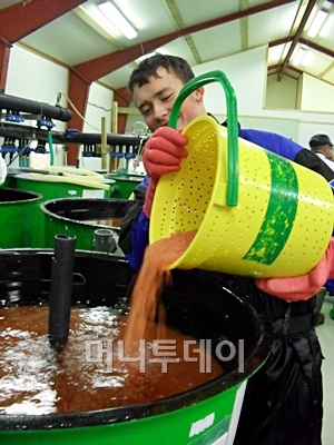 올 초 75g 무게로 들어왔던 새끼 연어들은 어느새 1.5kg 까지 자랐다. 이 연어들은 내년 크리스마스 시즌 전까지는 모두 시장에 선보이게 된다. 2년을 주기로 '물갈이'가 되는 셈이다.
