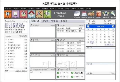 특히 ‘프랜차이즈 오피스’는 프랜차이즈 기업 운영에 필요한 전자결재를 포함한 가맹본사, 가맹점, 계약관리, 물류관리, 개점관리, 캠페인 관리와 같은 프랜차이즈 업무에 특화된 기능을 제공한다. 또한 가맹점, 협력업체 및 공급업체간의 연동되는 데이터를 실시간으로 제공하고 있다.
