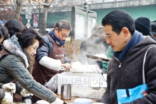 오 대표를 만난 건 제법 이른 아침, 사당역 부근에서였다. 그는 노숙자들을 상대로 무료 아침 식사 제공 봉사 활동 중이었다. 나누고 베풀며 사는 것이 진정한 외식업자의 뜻이라는 생각으로 6년 전부터 시작한 일이다.