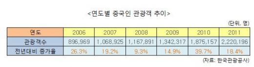 시 관계자는 "한국을 찾는 중국관광객이 매년 증가하고 있으나 전체 해외여행객 5739만명의 3.3%(2010년 기준)에 불과하다"며 "중국 관광객을 보다 더 적극적으로 유치하기 위해 입국시 최대 장애요인인 불합리한 비자 제도 개선이 필요하다"고 말했다.