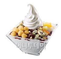 올해 선보이는 팥빙수는 고소한 맛을 강조하여, 시원한 아이스에 달콤한 팥과 해바라기씨, 호박씨, 아몬드 등 3가지 견과류를 푸짐하게 담았으며, 콩고물을 묻힌 미니 인절미까지 더해 고소한 풍미와 함께 쫄깃쫄깃하게 씹는 식감을 한껏 강조한 것이 특징이다.