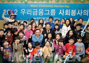 지난 4월2일 우리금융그룹은 창립 11주년을 맞아 이날을 '우리금융그룹 사회봉사의 날'로 지정했다. 떠들썩한 기념식 대신 봉사의 의미를 다지며 차분히 창립기념일을 맞은 것이다. 이날 행사에서는 우리금융의 11개 계열사는 물론 해외지점까지 곳곳에서 1만4000여명의 임직원이 참여해 눈길을 끌었다. 이팔성 우리금융 회장도 서울 관악구의 한 공부방에서 임직원들과 함께 급식 자원봉사활동을 펼쳤다.