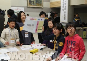 이날 체험교실은 서울 및 수도권 초등학생을 대상으로 열린 1차 'KB스타 경제·금융교실'. 상설 센터 내 은행과 상점 등에서 별도의 통장과 화폐를 사용하면서 생산·소득·저축·소비의 경제활동을 실습해보는 수업이었다. 직접 모은 소득으로 어려운 이웃을 돕는 '기부' 활동에도 참여해 사랑과 나눔의 의미를 되새겨보기도 했다.